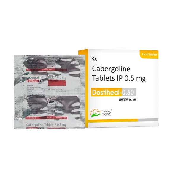 도스티힐 0.25mg 0.5mg · 카베르골린 · cabergoline · 고프로락틴혈증 치료 · 프로락틴 감소 · 프로락티노마 · 유즙분비 억제 · 도파민 작용제 · 주 2회 복용 · 심장판막증 주의 · 부작용 · 용법용량 · Healing Pharma · 인도 제네릭