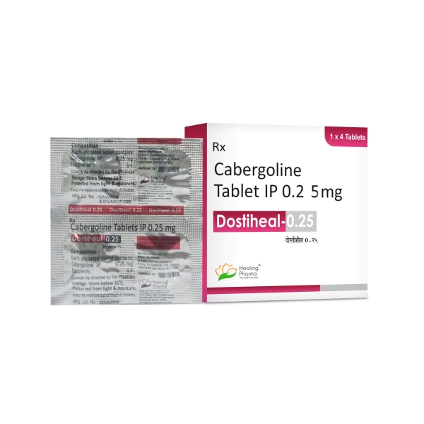 도스티힐 0.25mg 0.5mg · 카베르골린 · cabergoline · 고프로락틴혈증 치료 · 프로락틴 감소 · 프로락티노마 · 유즙분비 억제 · 도파민 작용제 · 주 2회 복용 · 심장판막증 주의 · 부작용 · 용법용량 · Healing Pharma · 인도 제네릭